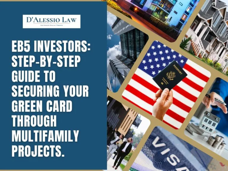 If you want to apply as an EB5 investor investing in multifamily projects, seek legal advice from a skilled immigration lawyer. Schedule a consultation with us, and our attorneys from D’Alessio Law Group will guide you through this process.